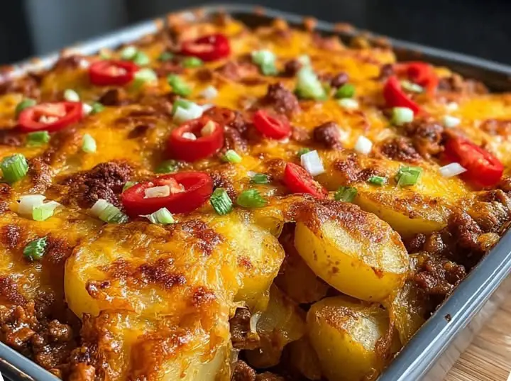 This Chili Cheese Potato Bake is a rich, comforting, and flavor-packed dish made with tender potatoes, spicy chili, and melted cheese baked to golden perfection. It’s the perfect weeknight dinner or party side dish that feels indulgent but is super easy to prepare. Every bite is creamy, cheesy, and slightly spicy with a satisfying hearty texture. Ideal for cold evenings, gatherings, or when you want something filling and delicious with minimal effort.