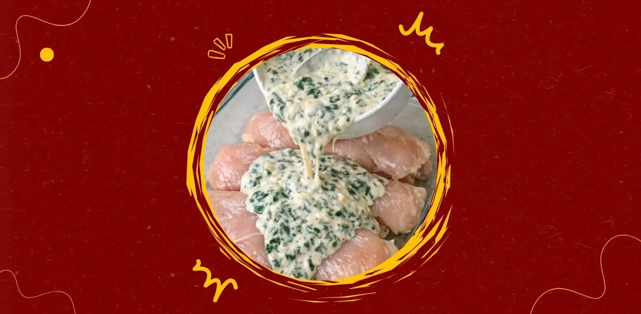 - Place chicken breasts in the casserole dish. Spoon the velvety spinach mixture evenly over the chicken.